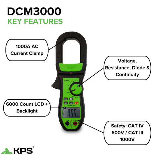 KPS DCM3000 True RMS Industrial Clamp Meter for AC/DC Voltage and AC Current