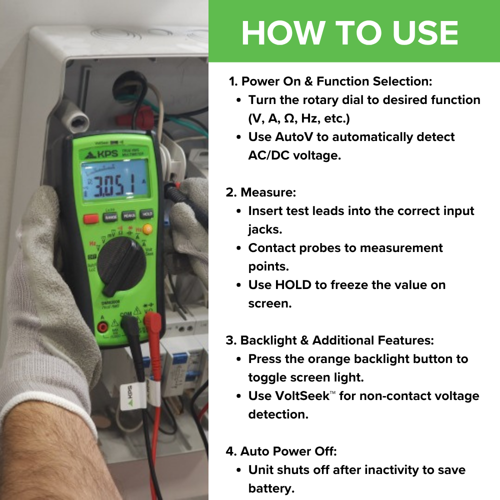 Rated CAT IV 600V / CAT III 1000V, it’s perfect for electricians, HVAC techs, and field professionals.